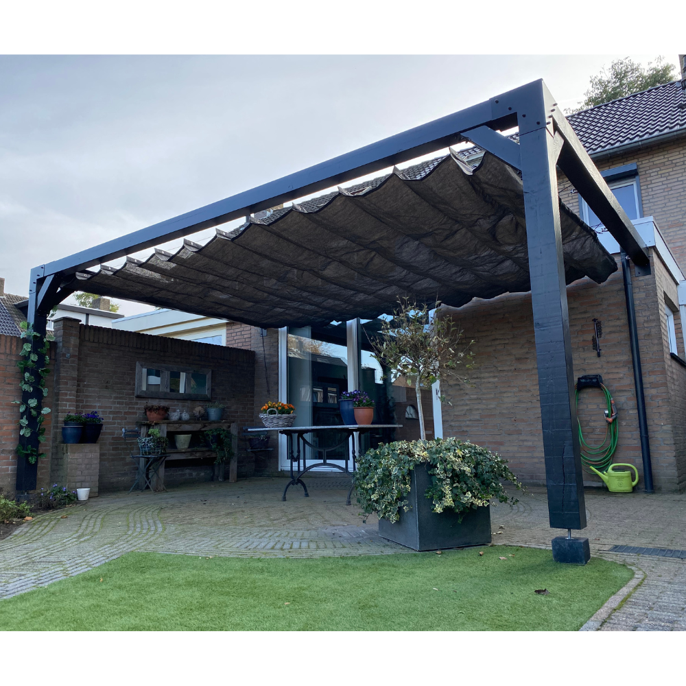 De pergola met haromonicadoek is de perfecte toevoeging aan ons terras.