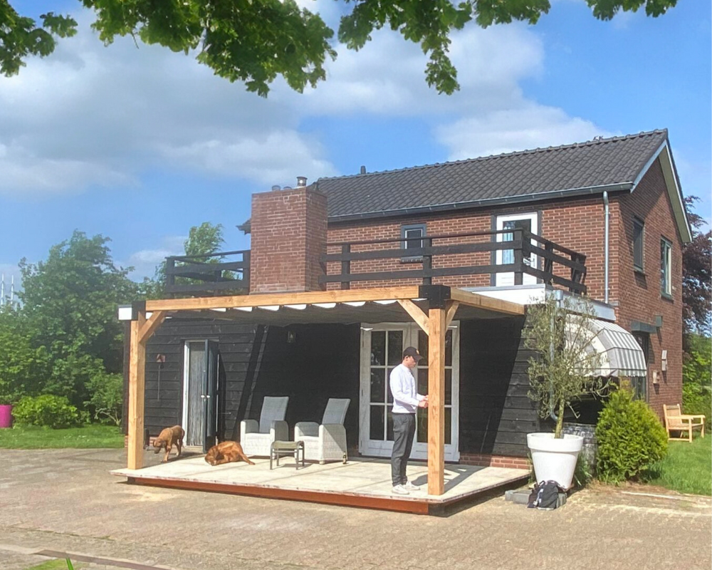 Onze pergola’s worden geleverd met hoogwaardige koppelstukken, stevige muurankers, duurzaam hout en UV-bestendig HDPE-stof voor de schaduwdoeken. Alles is eenvoudig te monteren en makkelijk te bedienen.